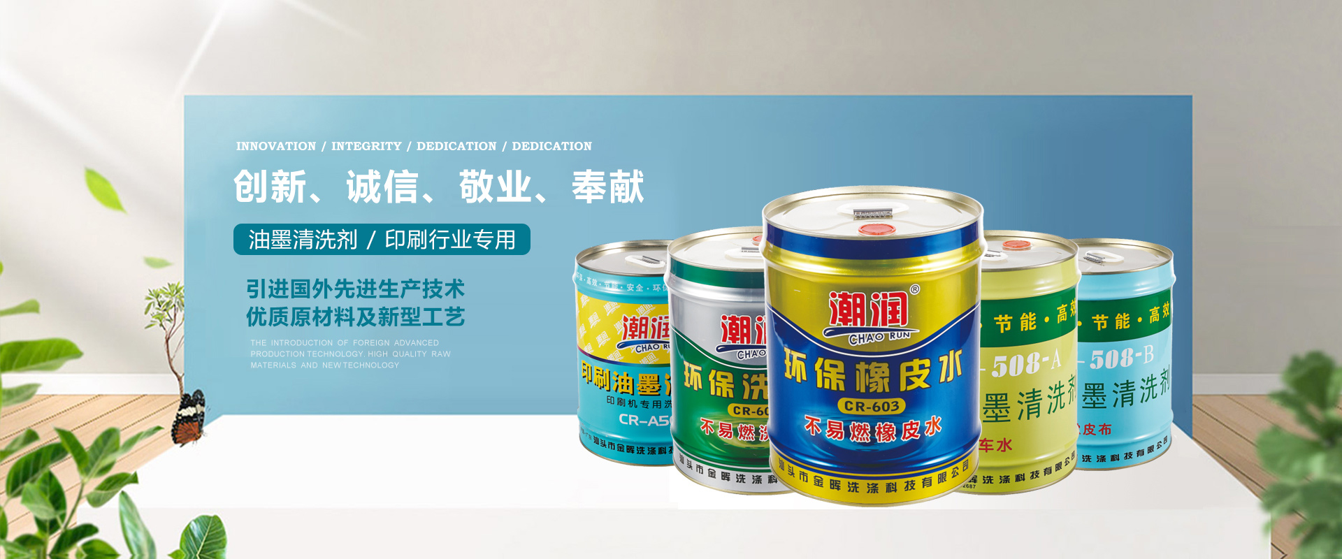 汕頭市金暉洗滌科技有限公司是廣東汕頭市一家民營企業,專業從事節能、無毒、環保印刷洗滌用品的開發、研究工作,專業生產油墨清洗劑(洗車水)、橡皮布清洗劑(洗皮水)、還原劑、洗版液、潤版液、金屬清洗劑等產品。金暉與國內外多家精細化工研究機構合作,從引進國外先進生產技術、高品質原材料及新型工藝著手,所有產品均符合國際通用SGS、ROHS標準,使公司開發出的“金暉”和“潮潤”牌系列產品在同行業中均有所創新,該產品推向市場得到國內廣大印刷廠家的肯定與好評。